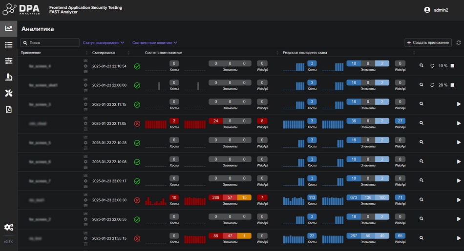Продукт DPA Frontend Application Security Testing (FAST) Analyzer позволяет выявлять угрозы в frontend-приложениях в процессе разработки и выпускать js-приложения по принципу Secure by Design. Заполните форму для записи на бесплатное тестирование.